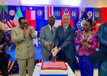 El Embajador de los Estados Unidos en Guinea Ecuatorial, David Gilmour, dio la bienvenida a los invitados en la recepción ...