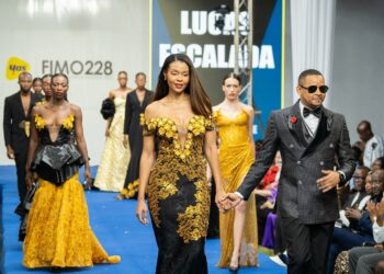 Lucas Nguema Escalada deslumbra en el FIMO228 junto a su musa Diana Hinestrosa Eraul con su colección «Nacer y Renacer»