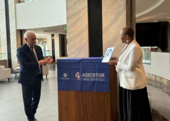 CATALINA MARTINEZ ASUMU, Delegada de ASICOTUR, miembro afiliado a ONU Turismo, hizo entrega oficial de esta distinción en representación de ...