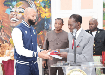 S.E Obiang Nguema Mbasogo, ha hecho entrega de la Bandera Nacional este viernes a la Selección Nacional en una ceremonia ...
