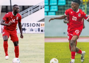 El Seleccionador y el arquero del Nzalang Nacional de Guinea Ecuatorial, Juan Micha Obiang y Jesús Lázaro Owono respectivamente, han ...