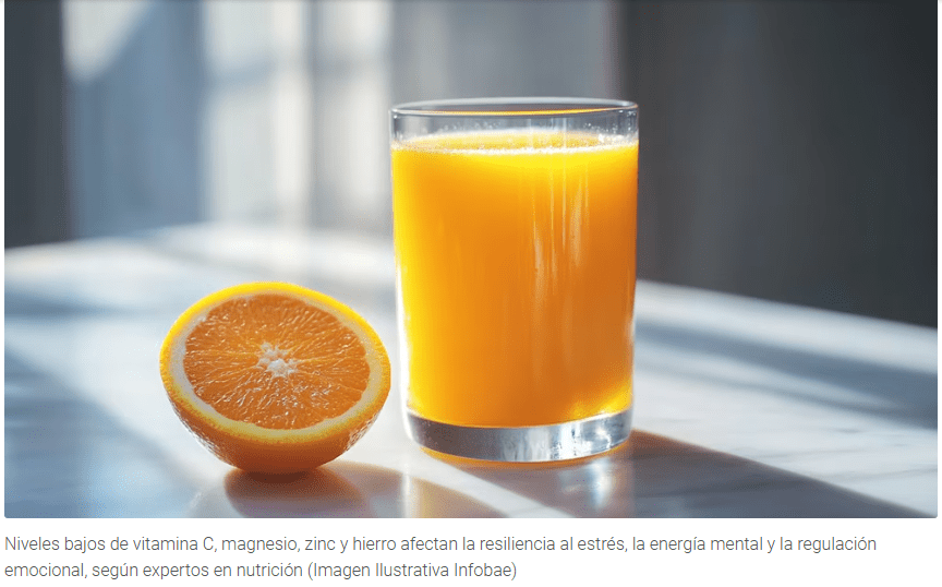 Niveles bajos de estos nutrientes se asocian con fatiga, baja resiliencia al estrés y alteraciones del estado de ánimo. Domínguez, resaltó que la vitamina C es esencial para el funcionamiento cerebral, ya que participa en la protección antioxidante, la síntesis de neurotransmisores y la modulación de la respuesta al estrés.