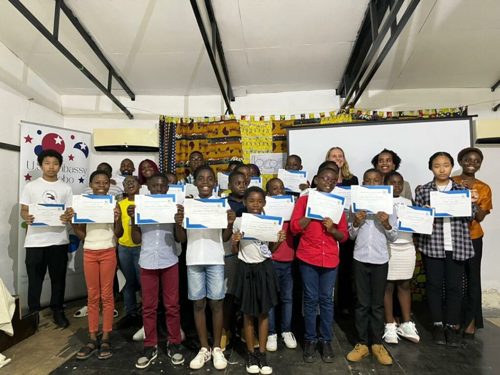 Tras la presentación de los proyectos, tanto los participantes como el instructor recibieron certificados de participación de parte de la Jefa Adjunta de Misión Diplomática de los Estados Unidos en Malabo, quien reconoció la dedicación y los logros alcanzados a lo largo de este taller.