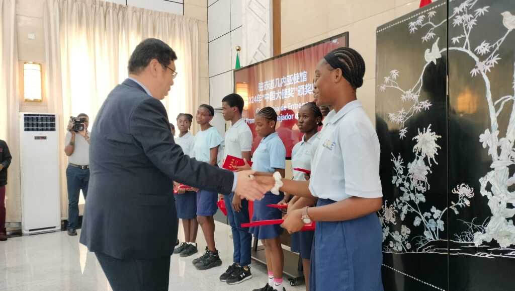 La Embajada de China en Guinea Ecuatorial ha premiado a los 26 mejores estudiantes del Colegio CANIGE Multilingual School; Colegio Nacional Amistad China de Buena Esperanza Ⅰ, y la Escuela la Amistad S&P, con el galardón Embajador de China 2024, reconociendo sus logros académicos, su desarrollo integral y la expectativa de que puedan hacer nuevas contribuciones en el futuro al intercambio y la cooperación entre China y Guinea Ecuatorial.