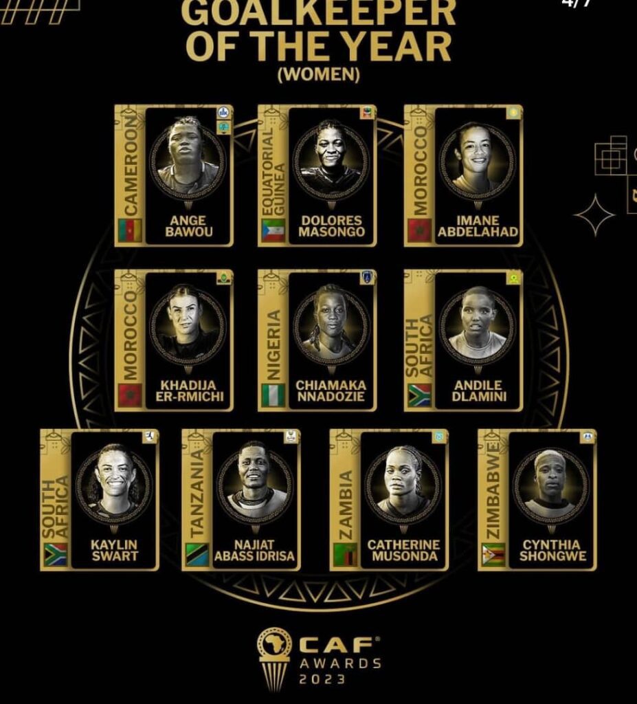 La Confederación Africana de Fútbol ha revelado este martes, 14 de noviembre, los nominados a los Premios CAF 2023 en categorías femeninas con presencia de un club ecuatoguineano y dos jugadoras. Se trata de Dolores Hernández, nominada a la portera del año, mientras que Elena Obono ha sido nominada a la jugadora interclubes. El Huracanes FC, equipo de ambas futbolistas, también ha sido nominado al Mejor Club del Año, la ceremonia de estos premios será el 11 de diciembre de 2023 en Marrakech, Marruecos.