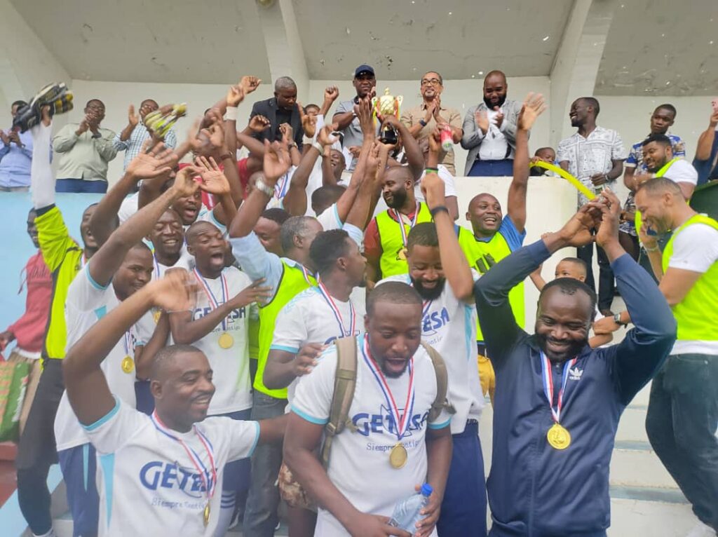 En esta primera edición de la «Liga Empresarial 2024» celebrada en la parte continental del país, participaron un total de 9 empresas, y se clasificaron los blancos de Getesa y los azules de EGTC a la final del torneo. Durante el enfrentamiento, el equipo de EGTC se adelantó en el marcador con un gol temprano anotado en el minuto 18 de la primera mitad del choque; un resultado que mantuvo hasta el descanso de esta final que fue muy disputada.