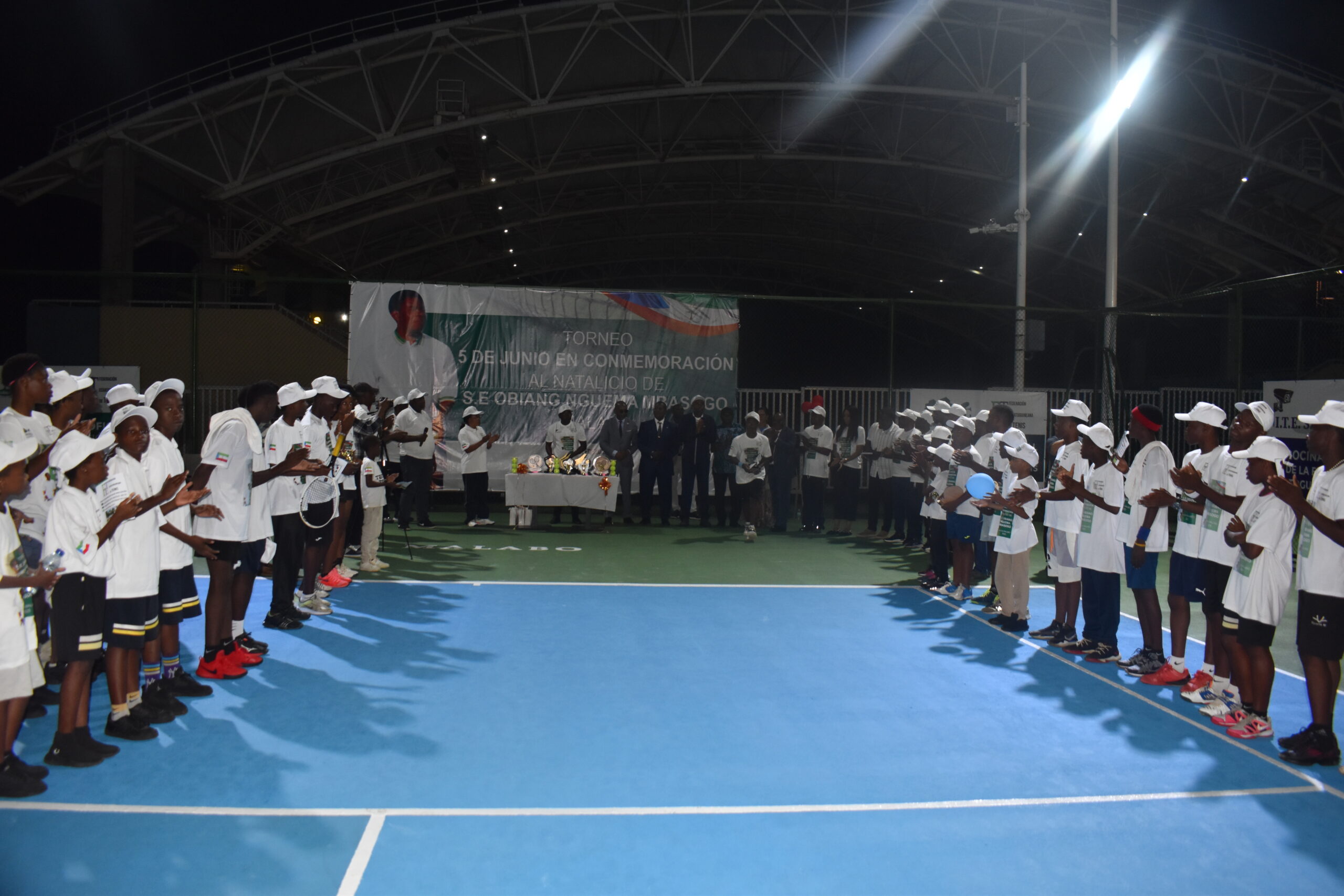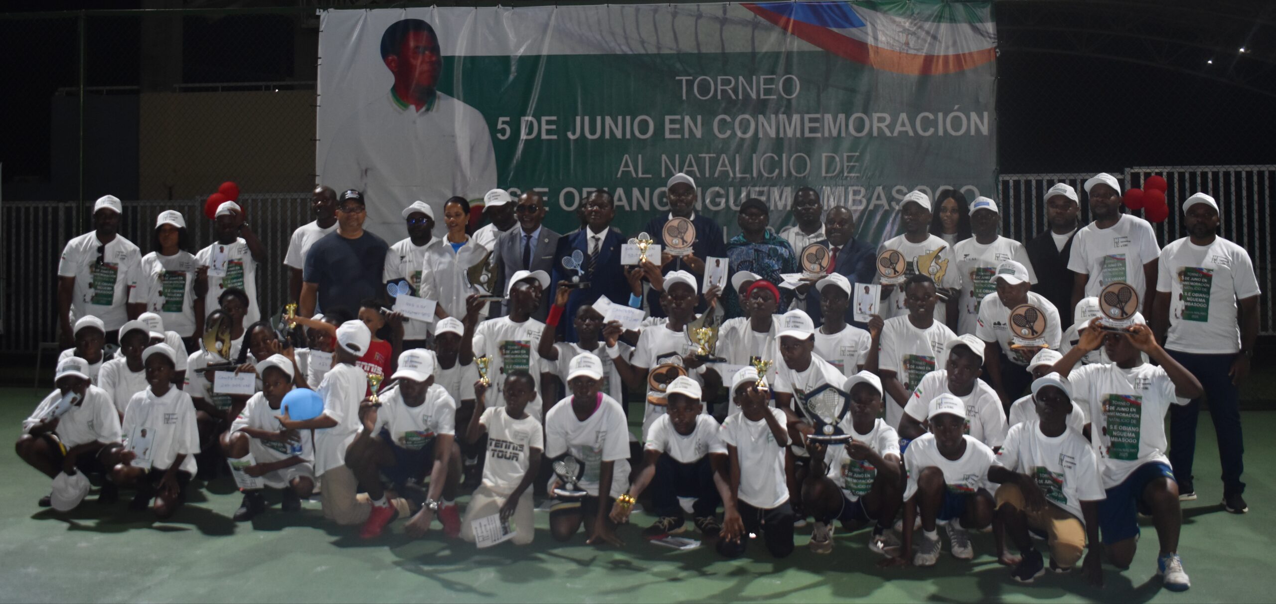 La Federación Ecuatoguineana de Tenis ha celebrado los cumpleaños del Presidente, Obiang Nguema Mbasogo, con un torneo en Malabo. Este campeonato, que comenzó el 24 de mayo, ha sido un espacio para jóvenes talentos del deporte de la raqueta, quienes han destacado en diversas categorías. Tras varias jornadas de competición, los campeones fueron reconocidos por sus logros, recibiendo trofeos y una suma económica como recompensa. A continuación, se presentan los resultados de las distintas categorías: