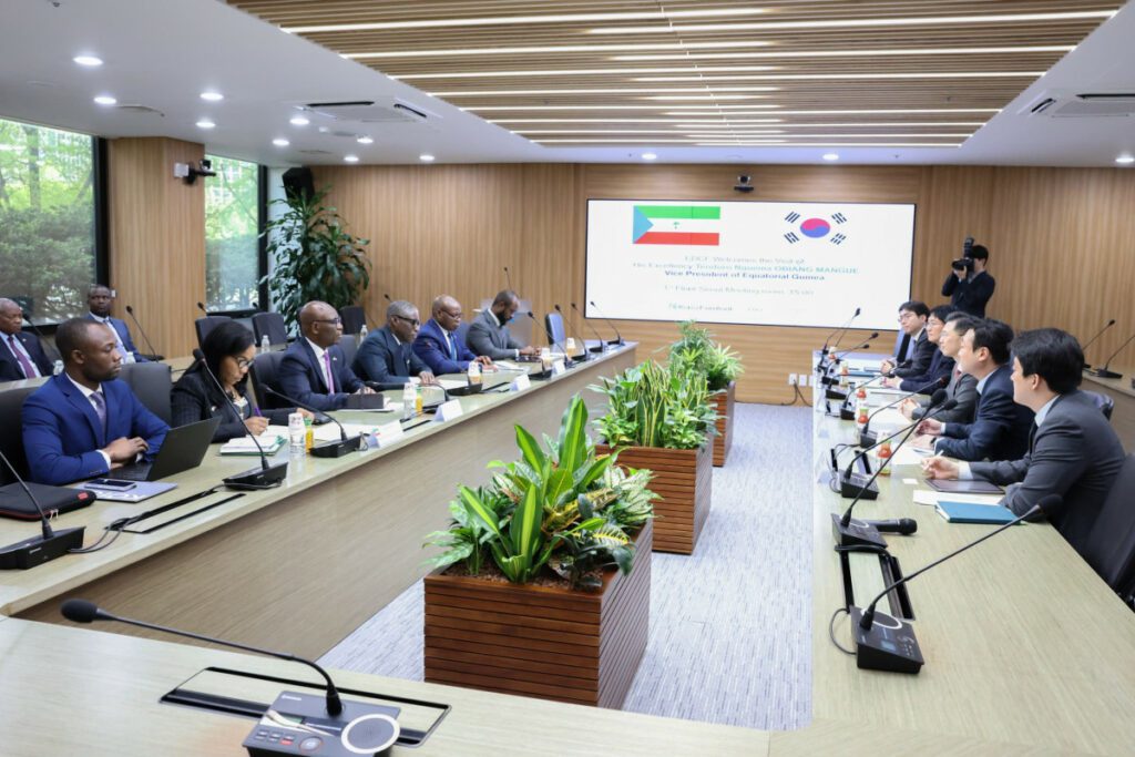 Guinea Ecuatorial ha presentado al Banco Eximbank de Corea una propuesta de colaboración para el desarrollo de un paquete de proyectos prioritarios, orientados a impulsar la diversificación económica y la industrialización del país. Esta iniciativa ha sido el eje central de la sesión de trabajo mantenida ayer miércoles, 23 de abril en Seúl, entre el Vicepresidente de la República, Nguema Obiang Mangue, y el Director Ejecutivo de Eximbank, Um Sung Yong, en presencia de varios miembros del Gobierno.