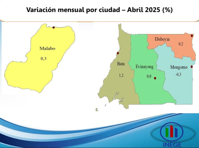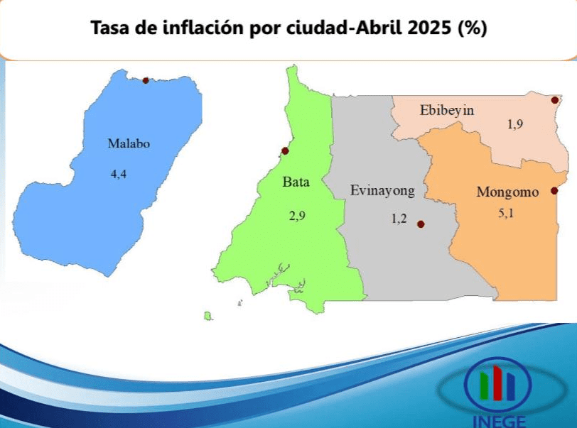 El mes de abril de 2025 registra una tasa media de inflación del 3,4%, inferior al (3,5%) registrada en el mes anterior y superior al umbral del 3% fijado por la CEMAC en el marco de su mecanismo de vigilancia multilateral.