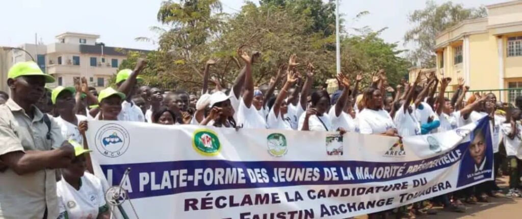 El martes de esta semana se celebró en Bangui una gran marcha política en apoyo del Presidente de la República Centroafricana, Faustin-Archange Touadera, organizada por la Plataforma de Jóvenes de la Mayoría Presidencial. En esta marcha participaron activistas de muchos partidos de oposición como MLPC, RDC, PNCN y CANE. El objetivo de esta reunión era presentar una nota al Jefe de Estado, solicitándole presentarse como candidato a las próximas elecciones presidenciales. Hablando en nombre de esta Plataforma, Christian Gonedere Kossi calificó al Presidente de la República como el «Josué de la República Centroafricana», afirmando que el actual Jefe de Estado es quien conducirá al país hacia la explotación soberana de sus recursos y el desarrollo.