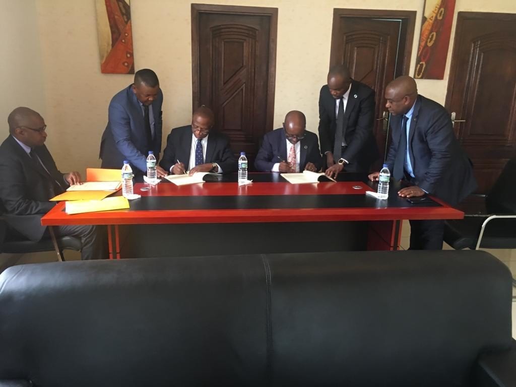 la firma de dos acuerdos de préstamo entre el Gobierno de la República de Guinea Ecuatorial, representado por el Excmo. Sr. César Augusto MBA ABOGÓ, Ministro de Hacienda, Economía y Planificación, con el Banco Africano de Desarrollo (BAD), representado por el Sr. Osmane Dore, Director General del BAD.