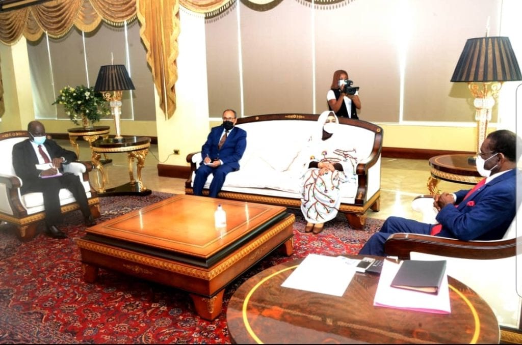 La audiencia entre el Presidente de la Republica, Jefe de Estado y Gobierno, Obiang Nguema Mbasogo y Amira El Fadil, Comisaría de Asuntos Sociales de la Unión Africana, se ha producido este jueves día 08 de abril del 2021, en el Palacio África de Bata.