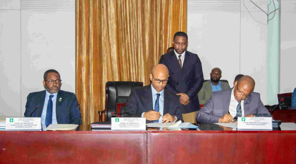 A nivel de Hacienda, el Acta recogió tres puntos básicos a saber: (i) las acciones prioritarias ejecutadas y pendientes de ejecución; (ii) los textos legislativos y (iii) los proyectos de diversificación económica, además de la presentación del patrimonio, incluido el mobiliario de este departamento. En relación a las acciones ejecutadas se destacó el Acuerdo con el FMI sobre un Programa Supervisado por su Personal Técnico (PSP) no financiero de 12 meses; el Acuerdo Marco con la República Popular China; el Acuerdo con el Banco de Desarrollo de los Estados de África Central (BDEAC) sobre varios proyectos en ejecución en el país entre otros.