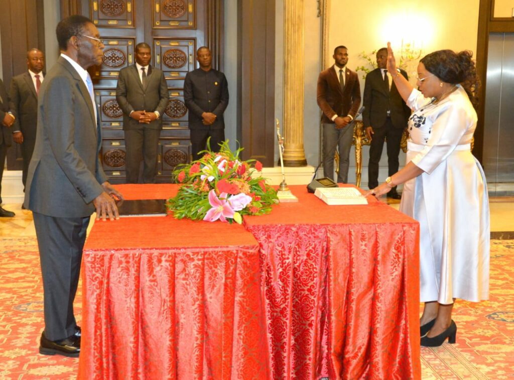 Manuela Roka Botey, actual Vicepresidenta del Consejo de la República, Encargada de Materias Académicas, Jerónimo Osa Osa Ekoro, Ministro de Información, Prensa y Cultura, así como el nuevo Ministro Delegado de Educación, Ciencias y Enseñanza Profesional, encargado de Infraestructuras Escolares y Deportivas, Constantino Obiang Esono Ayingono, y el Secretario de Estado de Aviación Civil e Infraestructuras Aeroportuarias, Pedro Obama Rabago, han jurado sus cargos este miércoles ante el Jefe de Estado y de Gobierno, Obiang Nguema Mbasogo como nuevos miembros del Gobierno de Guinea Ecuatorial.