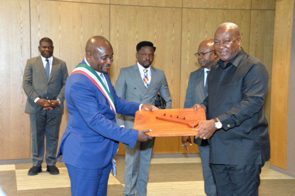 Por otra parte, el Presidente electo de la República de Ghana, durante su visita a la Casa Consistorial, ha recibido las llaves de la ciudad de Mongomo, que le permiten, además de visitar en cualquier momento la capital de la Provincia de Wele-Nzás, también poder adquirir un terreno y edificar su hogar como ciudadano y de forma libre de impuestos. Este acto se desarrolló en la sede del Ayuntamiento Central de Mongomo, donde su Alcalde, Godofredo Mba Ela Obono, ha valorado la presencia del ilustre huésped, fruto de las buenas relaciones amistosas que desde tiempo atrás unen a estos dos países del continente africano.