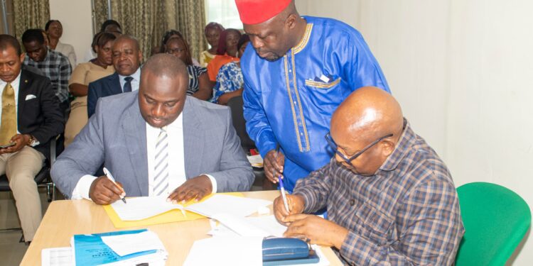 El Presidente de la Cámara Oficial de Comercio, Agrícola y Forestal de Bioko saliente, Ángel Nokonoko Micoso, después de 5 años al frente de esta institución, ha hecho entrega de despacho este martes, 11 de febrero al Presidente entrante, Benjamín Mitogo Bielo, en presencia del Primer Ministro, Manuel Osa Nsue.