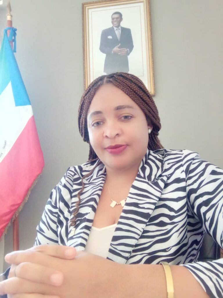 Gracias a un señor, mi mentor, una persona maravillosa, de nombre Domingo Nguema Edu, me formó profesionalmente, porque todo el trabajo que hago hoy en día, me lo enseñó ese señor, hasta nominarme mejor funcionaria de mi dirección. De mejor funcionaria me ascendieron a jefa de Sección, de Jefa de Sección a Directora General para África y Oriente Medio, durante mi tiempo como Directora, participé en varias Cumbres, reuniones bilaterales y viajes oficiales con el Jefe de Estado. Después de un tiempo, me cesan como Directora para África y me nombran como Directora General para Europa y América, la rutina era la misma; viajes, negociaciones, comisiones, reuniones y en 2020, me cesan como Directora y me nombran como Primera Secretaria en la Embajada nuestra en Venezuela; cargo que sigo ostentando hasta la fecha.