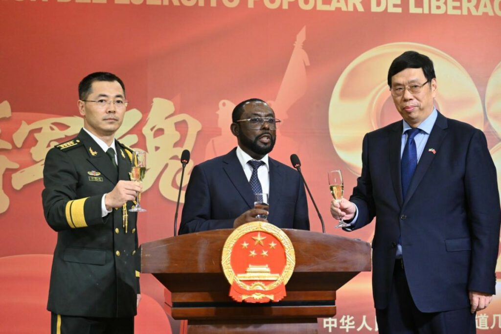 El Embajador, Wang Wegang inició su intervención tras la entonación de los himnos nacionales de Guinea Ecuatorial y la República Popular China, agradeciendo la presencia de los invitados al acto. «Es un placer darles la más cálida bienvenida a esta recepción, para celebrar juntos el 98º aniversario de la fundación del Ejército Popular de Liberación de China (EPL)», decía el embajador para luego presentar al primer Agregado de Defensa de la Embajada China en Guinea Ecuatorial, Guo Dongliang.