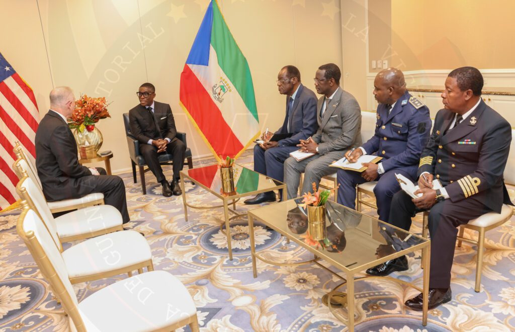 Durante la cita, S.E. Nguema Obiang Mangue, acompañado por el Viceministro de Defensa Nacional, ha recibido primero a Sean Patton, Director General para Medio Oriente y África de la empresa Lockheed Martin; una compañía global de seguridad y aeroespacial especializada en el desarrollo del sistema de combate Aegis y en la construcción de helicópteros con sede en Bethesda, Maryland, Estados Unidos.