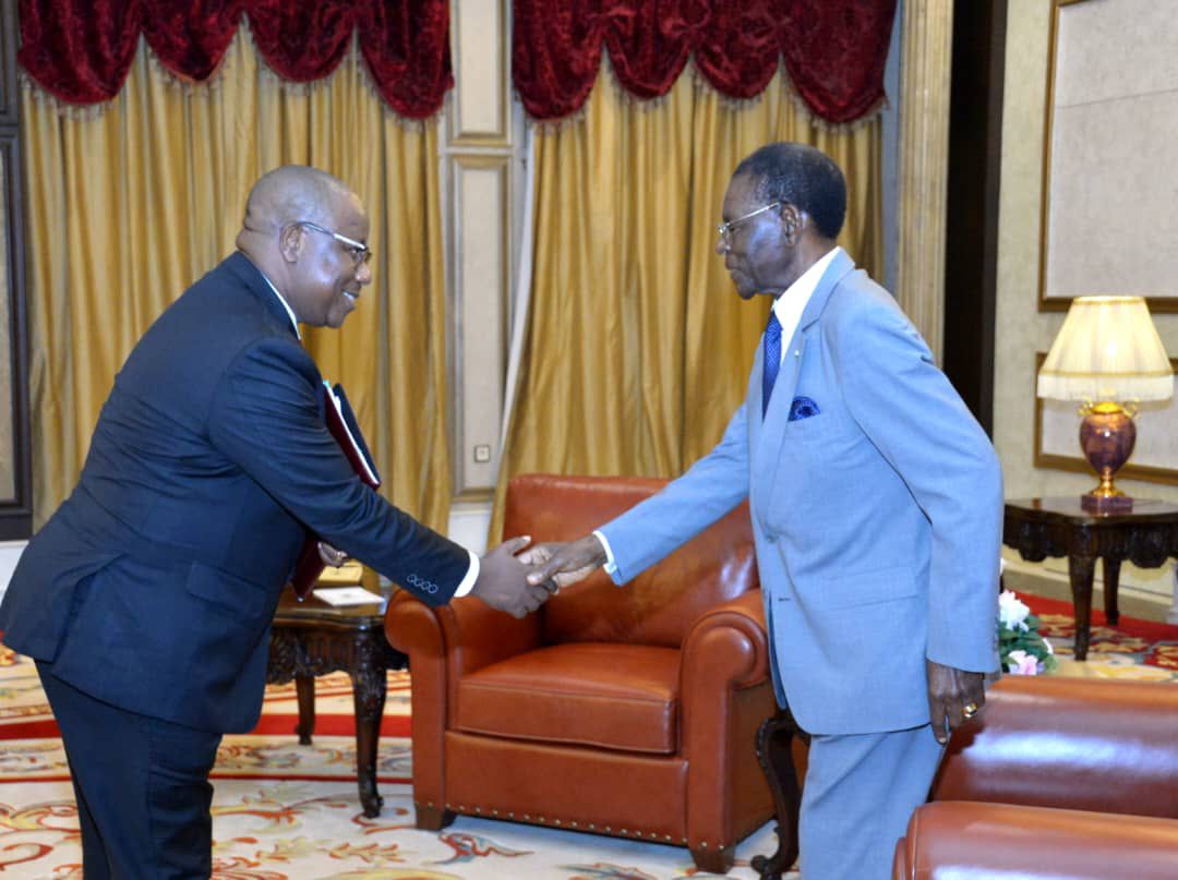 El encuentro ha tenido lugar en la sala de embajadores del Palacio del Pueblo de Malabo, en  presencia de los Ministros de Estado de Asuntos Exteriores Cooperación Internacional y Diáspora, Simeón Oyono Esono Angue y Lucas Abaga Nchama, del Departamento Ministerial de Integración Regional.
