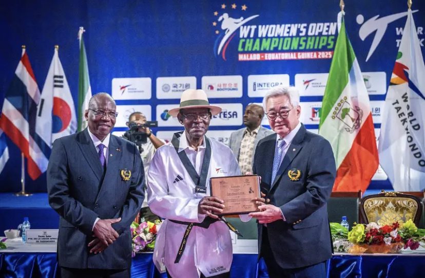 Como anfitrión y organizador de este evento deportivo, el Jefe de Estado ecuatoguineano, S.E. Obiang Nguema Mbasogo, ha recibido de la mano del presidente de la Federación Mundial de Taekwondo el Cinturón Negro Noveno Dan, la mayor distinción que entrega la asociación.