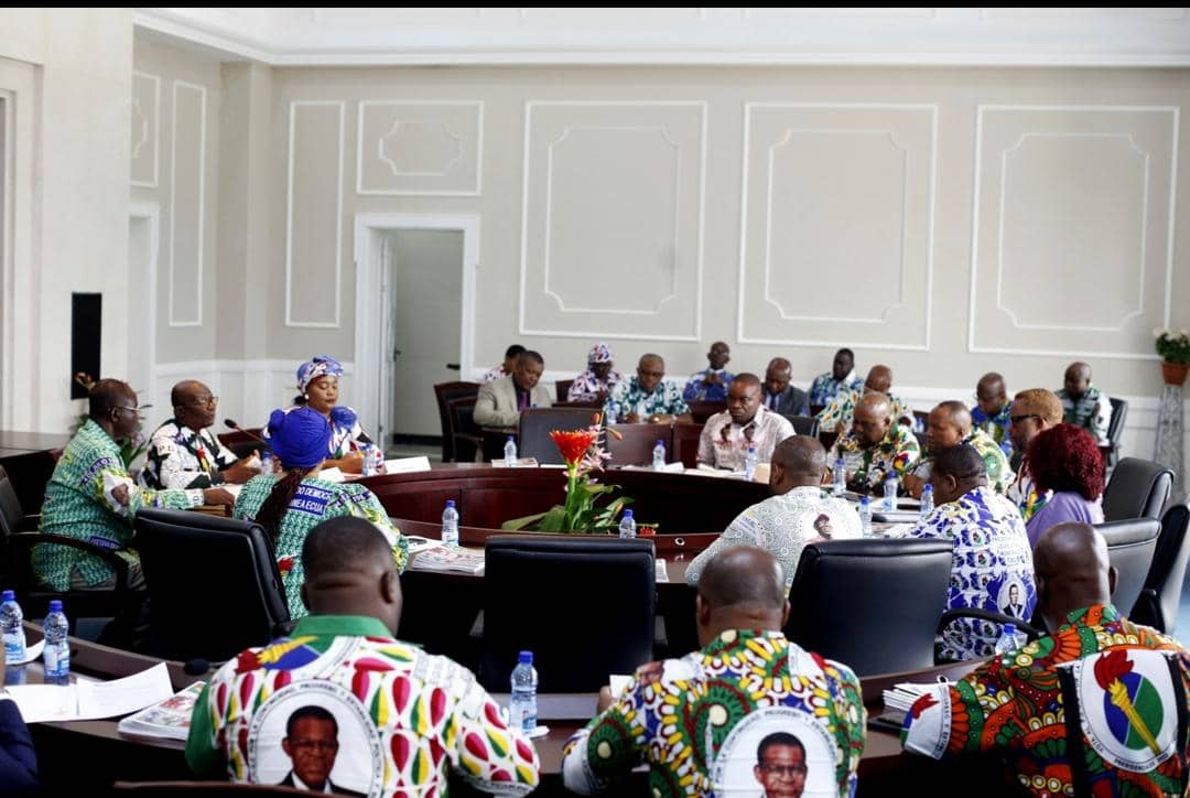 Acompañado por sus Adjuntos, Armando Ela Nsue Mengue y Judith Nfono Ngomo Nchama, el Secretario General del PDGE mantuvo un encuentro de coordinación con los Presidentes de las Comisiones Distritales de Seguimiento de todo el país.