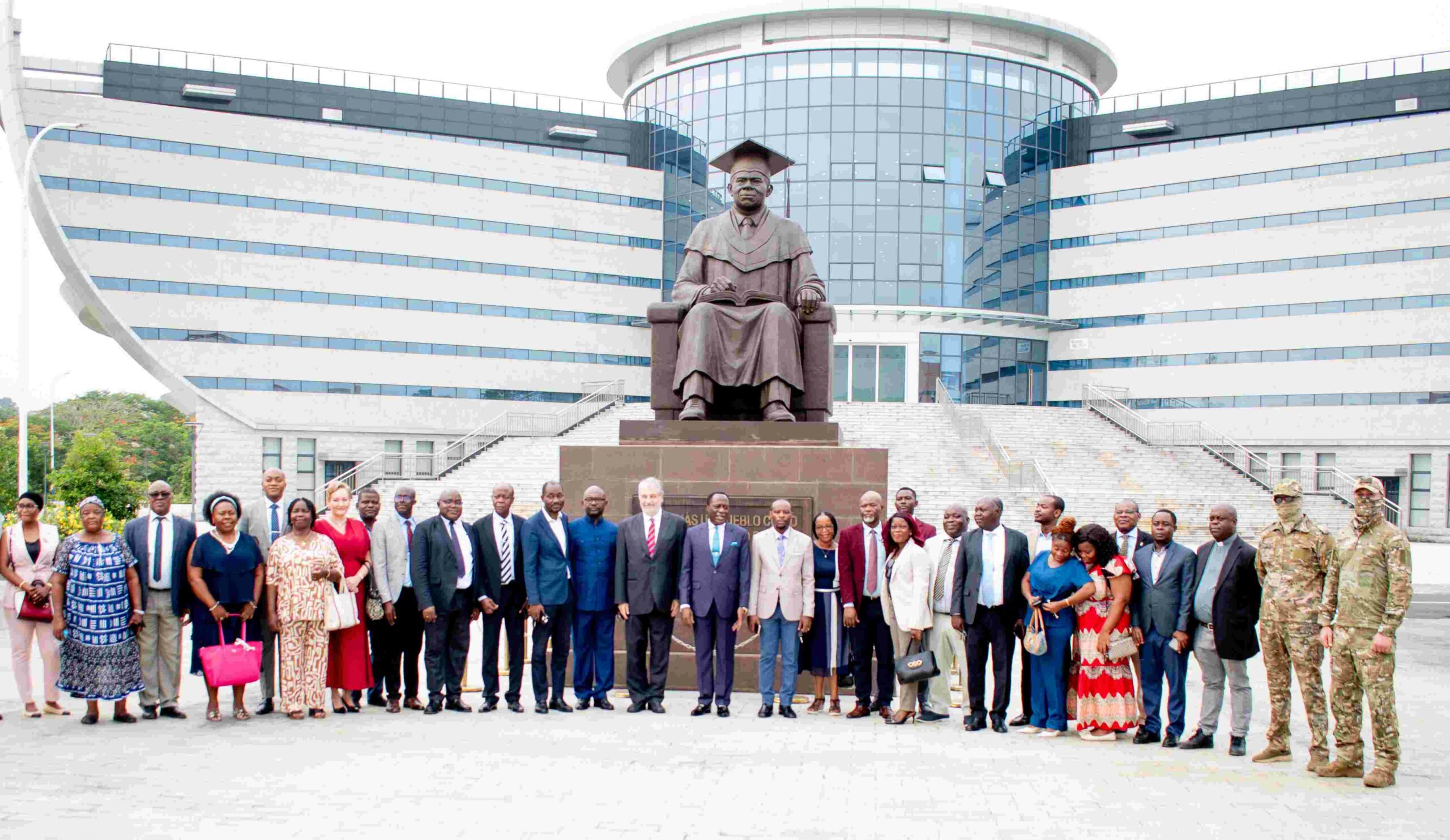 Esta ceremonia de entrega del generador eléctrico a la UNGE, que ha contado con la presencia del Viceministro de Educación, Ciencias, Formación Profesional y Deportes, así como varias autoridades del ministerio de Asuntos Exteriores y de la UNGE, ha finalizado con una foto de familia.