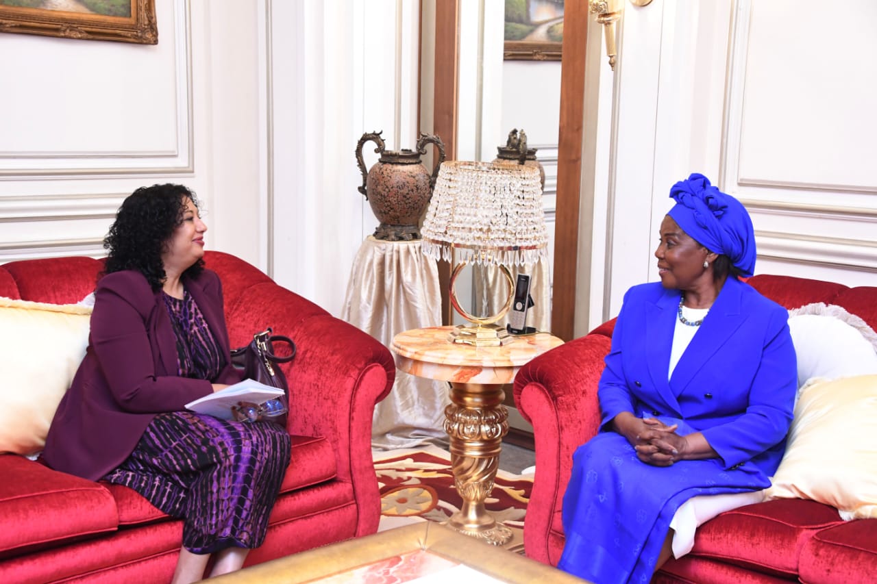 La Primera Dama de la Nación ha recibió por separado el lunes en el Palacio del Pueblo de Malabo, a las representantes residentes del Programa de las Naciones Unidas para el Desarrollo (PNUD) y del Fondo de las Naciones Unidas para la Infancia (UNICEF) en Guinea Ecuatorial.