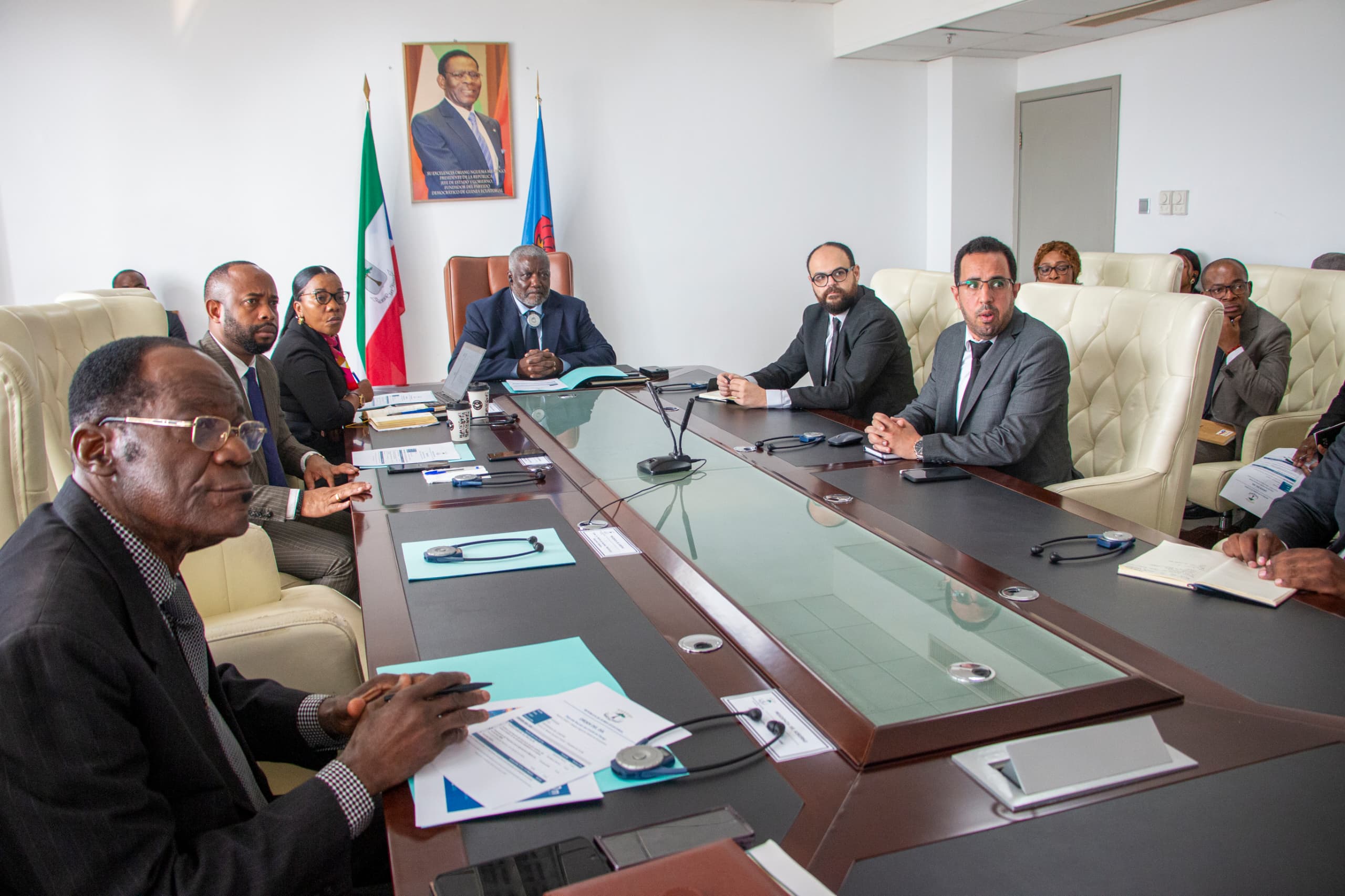 Durante su intervención, el presidente del Comité de Pilotaje dio la bienvenida a la delegación de M2M Group, resaltando que esta colaboración refuerza las relaciones de cooperación bilateral entre Guinea Ecuatorial y el Reino de Marruecos, y subrayando que la experiencia de la firma aportará un valor añadido significativo al proceso de modernización administrativa del país.