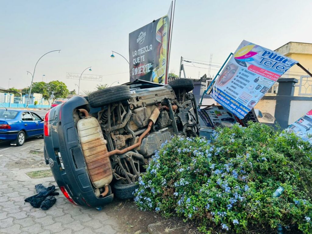 Sobre las 7:30 de la mañana de este domingo víspera de la navidad, se ha producido un accidente de circulación, en la rotonda de la Universidad Nacional de Guinea Ecuatorial (UNGE) en la ciudad de Malabo. Los cuatro ocupantes pudieron salir por sus propios medios y estaban en aparente buen estado de salud.