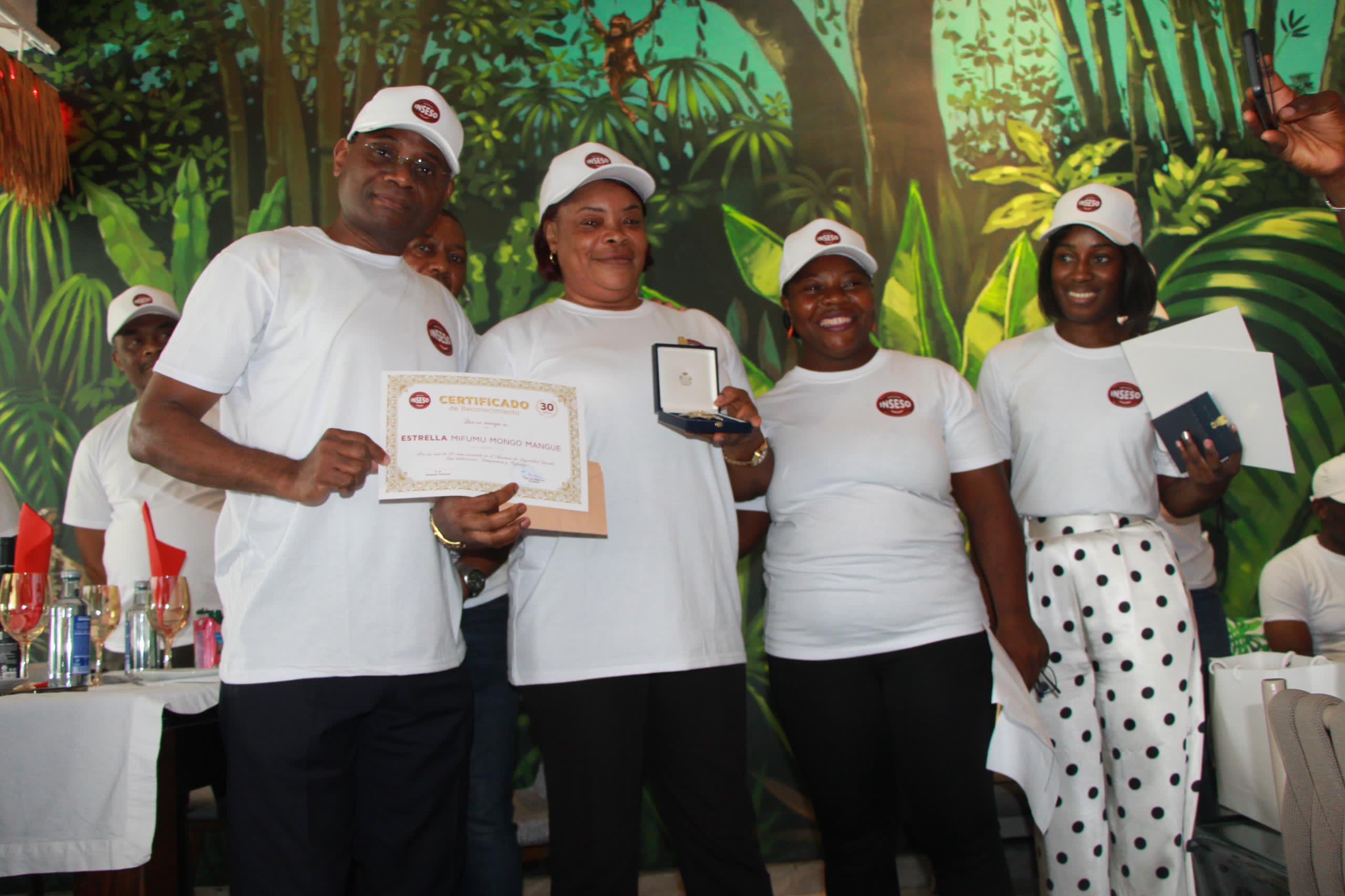 Durante la cita, un total de 13 empleados fueron premiados en reconocimiento a su contribución y su antigüedad en esta institución. Los afortunados cuentan con más de treinta años de experiencia en INSESO, desde diferentes puntos geográficos del país, entre ellos, Josefa Mba Eyang con 43 años de servicio y Ave-María Abang con 42 años. Todos los premiados han recibido unos sobres y certificados firmados por la Responsable de Recursos Humanos. También se realizó una tómbola, cuyo premio ha sido un vehículo, además de una competición de baile para dinamizar el ambiente. «Felicitaciones de corazón a quienes han dedicado más de 30 años a esta entidad, su compromiso, lealtad y pasión son un ejemplo inspirador para todos», dijo el Delegado Nacional de INSESO.