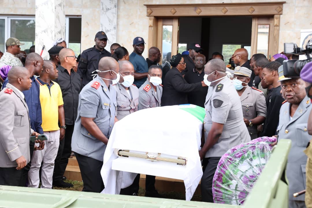 La Primera Dama de la Nación, S.E. Doña Constancia Mangue de Obiang, se ha dignado en acompañar personalmente a la familia del General durante esta ceremonia de despedida y expresar de este modo su solidaridad en estos momentos de dolor.