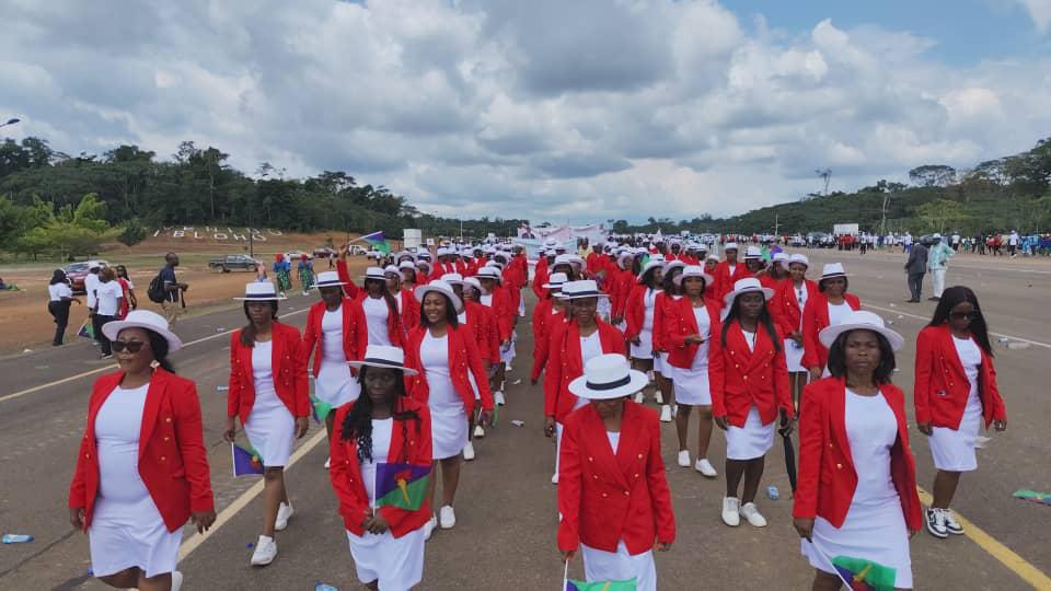 El personal del INSESO, encabezado por su Delegado Nacional, Moisés Angüe Nso Nchama, desfiló ayer uniformemente con los nuevos colores de la institución. Con paso firme e izando las banderas del país y del INSESO los trabajadores desfilaron frente a las autoridades nacionales y la ciudadanía, reflejando el espíritu de unidad, patriotismo y responsabilidad institucional.