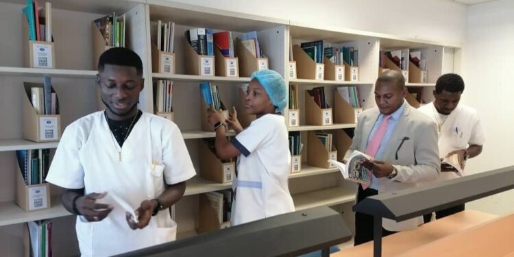 El Hospital de Sampaka cuenta ya con una biblioteca dedicada exclusivamente al personal sanitario; un recurso fundamental para la formación continua de los 40 profesionales ecuatoguineanos que están ampliando sus conocimientos en Terapia Intensiva e Imagenología. Este espacio, se convierte en un punto de referencia para el personal sanitario y para estudiantes de posgrado, quienes ahora cuentan con un lugar idóneo para actualizar sus conocimientos.
