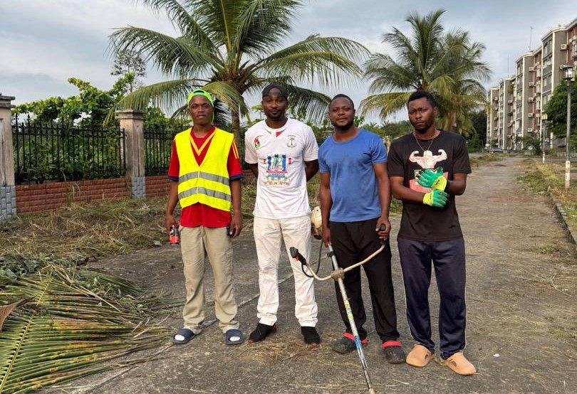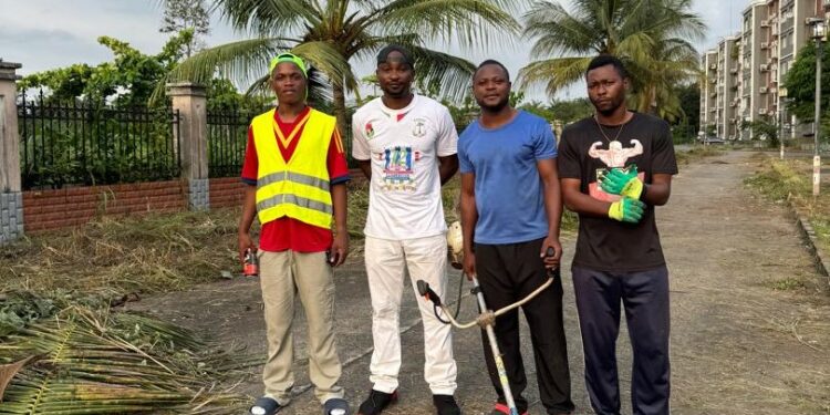 Bata: Jóvenes de ASHO dedican una jornada para limpiar la maleza que invade los alrededores de las Viviendas Sociales de Nkoantoma
