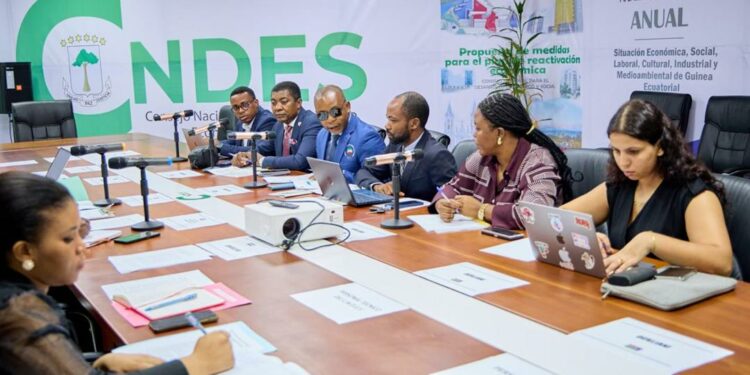 El Presidente del COGE, Alejandro Martín Owono Evuna asistido de sus colaboradores, se ha acercado ayer a la sede del Consejo Nacional para el Desarrollo Económico y Social, para presentar su informe económico 2025 y su plan estratégico 2026.