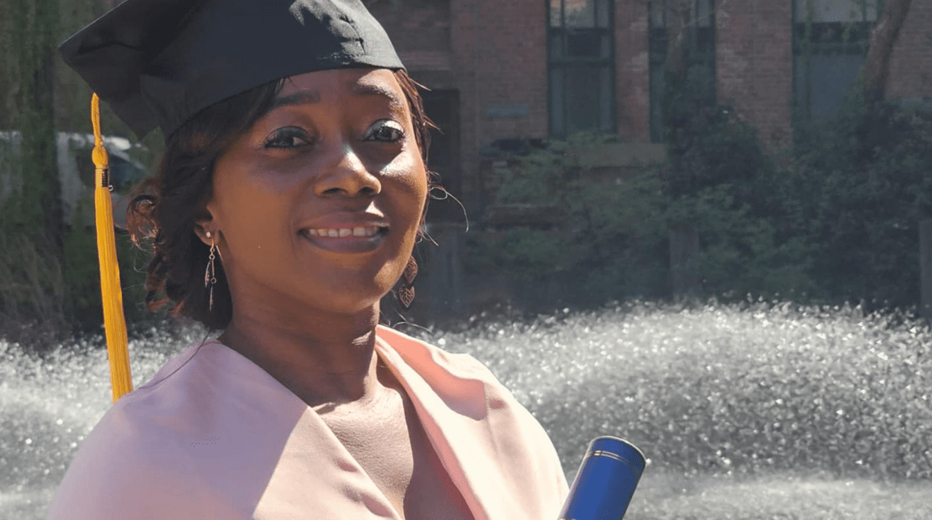 Mbang Nsue inició su formación en derecho en 2018 desde Guinea Ecuatorial en The Open University de Inglaterra, haciendo así realidad su deseo de formarse para poder ser más competente en su puesto de trabajo, además de cumplir un sueño que tenía desde pequeña. «No quería ser una Asistente para toda la vida. De pequeña siempre quise ser abogada; de hecho, mi familia me metió la idea en la cabeza. Me decían: ‘tú debates cualquier cosa; tienes que estudiar derecho. Así es como crecí con esa idea», dice Tatiana, mientras lamenta que no pudo entrar en la Facultad después del bachillerato por falta de dinero. «Cuando quise entrar en la Universidad en Ghana, me dijeron que la matrícula costaba siete mil dólares al año», asegura.