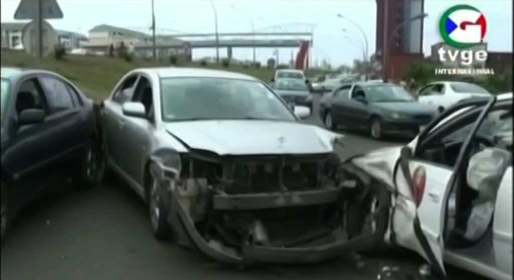 Este sábado, 28 de enero, a las 14 horas se ha producido una múltiple colisión en la autovía que une el aeropuerto con la ciudad de Malabo, justamente en las inmediaciones del hotel Carmen Galaxy. Según los testigos, el accidente ha sido producido por un conductor que intentaba maniobrar en medio de la autovía, chocandose así contra otros dos vehículos.