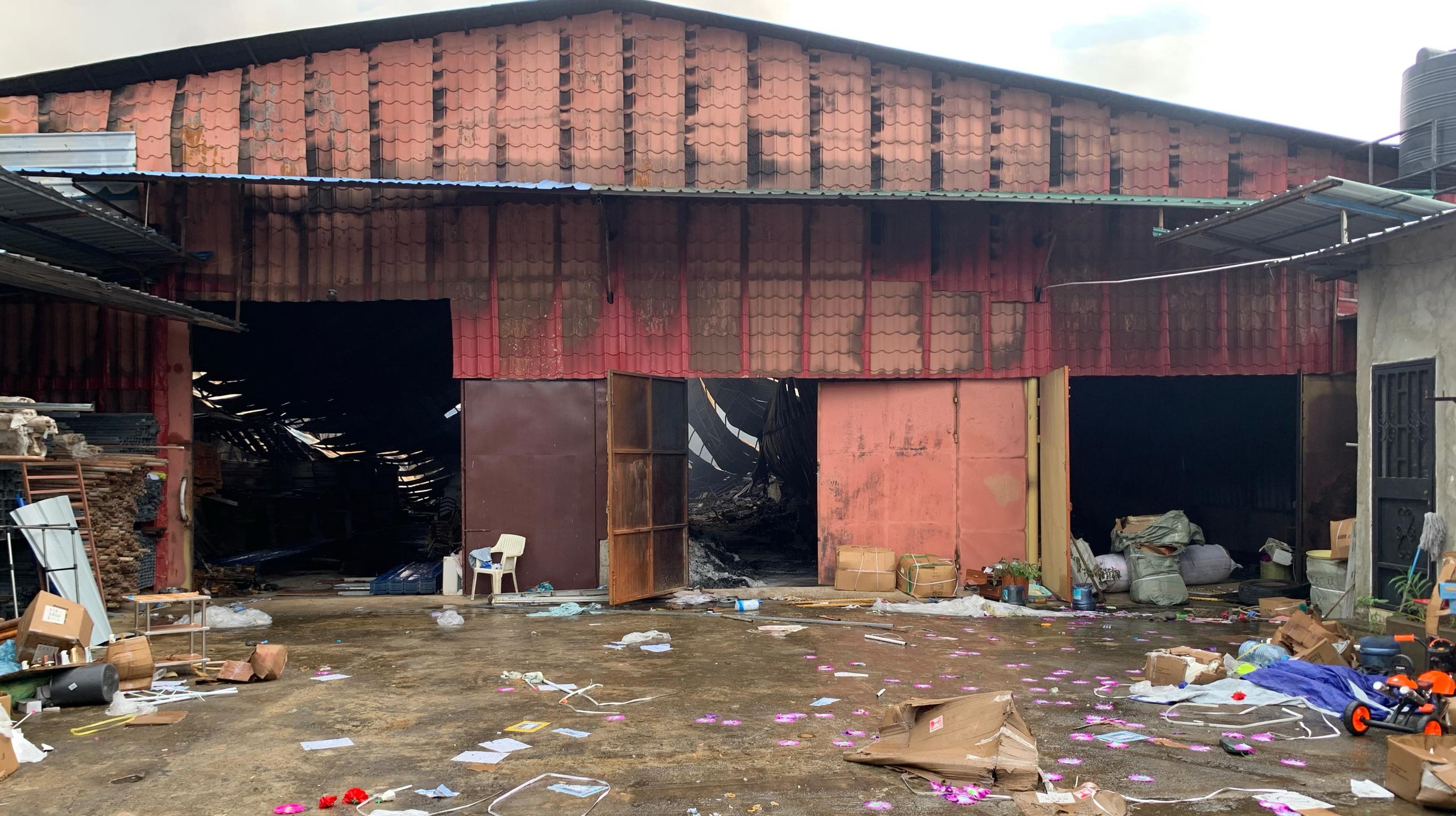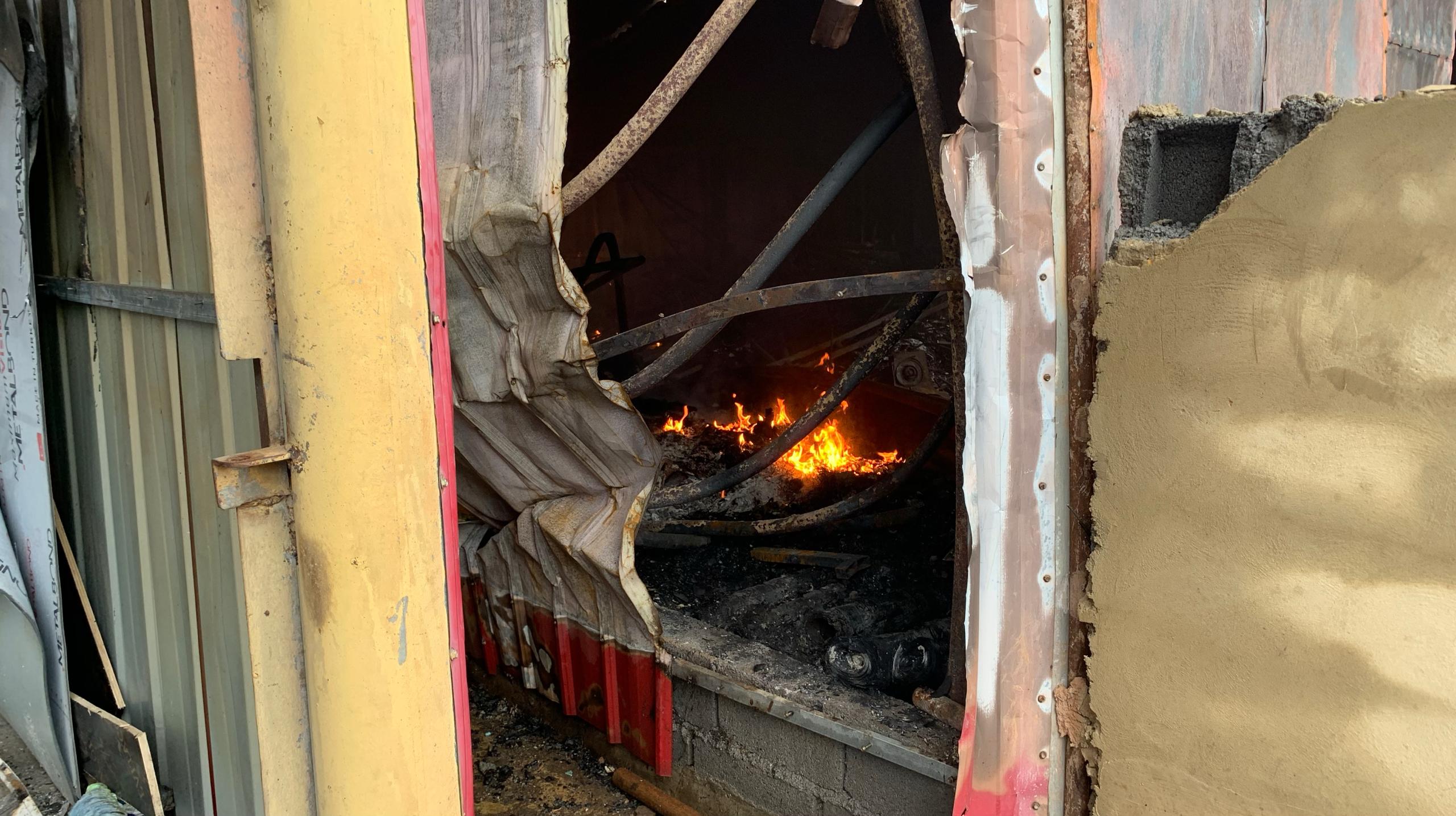 Los almacenes contenían artículos de construcción y de hogar, y se han quedado reducidos a cenizas, tras un incendio que se cree pudo haber sido causado por un cortocircuito, mientras se realizaban trabajos de soldadura.