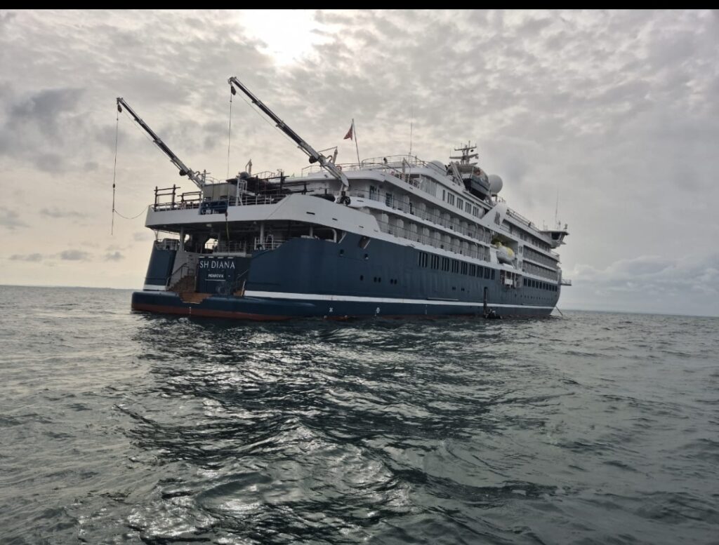La isla de Corisco ha recibido hoy a los más de 120 turistas que han llegado a bordo del Crucero SH Diana; un viaje organizado por la Asociación Internacional para la Cooperación Turística (ASICOTUR). Según el programa establecido, se espera que los huéspedes disfruten de una experiencia cultural y recreativa única. Los detalles del programa incluyen, actividades en el pueblo y en la playa, así como servicios y asistencias acordadas para asegurar una estancia confortable.