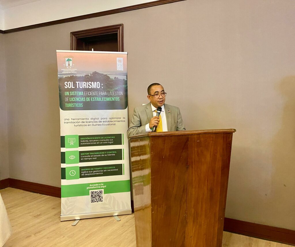 El Ministro de Turismo e Infraestructuras Turísticas, Antonio Pedro Oliveira Borupu, ha inaugurado este lunes 12 de mayo la Plataforma SOL TURISMO SIGOB-PNUD; una innovadora herramienta destinada a transformar la gestión del sector turístico en el país. Esta iniciativa del ministerio de Turismo apoyada por el Programa de las Naciones Unidas para el Desarrollo (PNUD), está diseñada para modernizar la gestión administrativa del sector turístico de Guinea Ecuatorial.