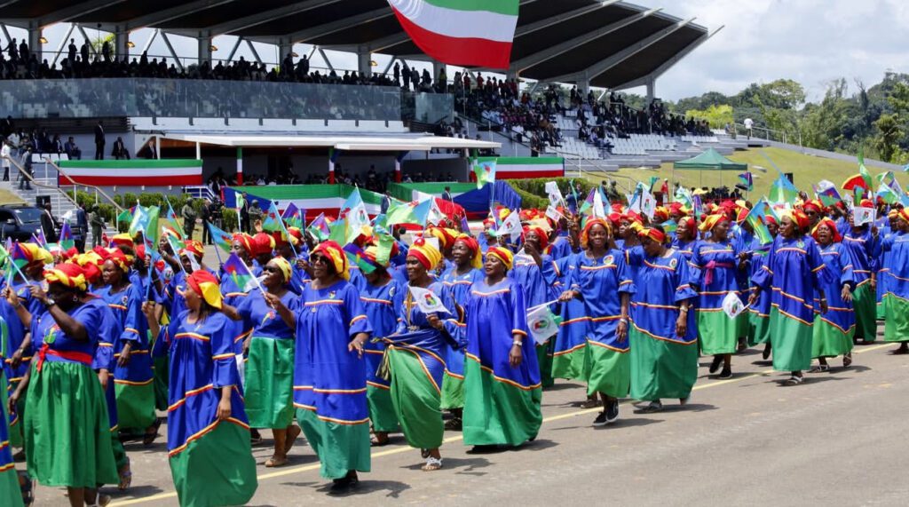 La jornada del 12 de octubre incluyó diversas actividades conmemorativas, entre ellas un desfile cívico y militar presidido por la Pareja Presidencial, S.E. Obiang Nguema Mbasogo y la Sra. Constancia Mangue de Obiang. La participación de unidades del ejército y de la sociedad civil reflejó la fortaleza y cohesión del pueblo ecuatoguineano.